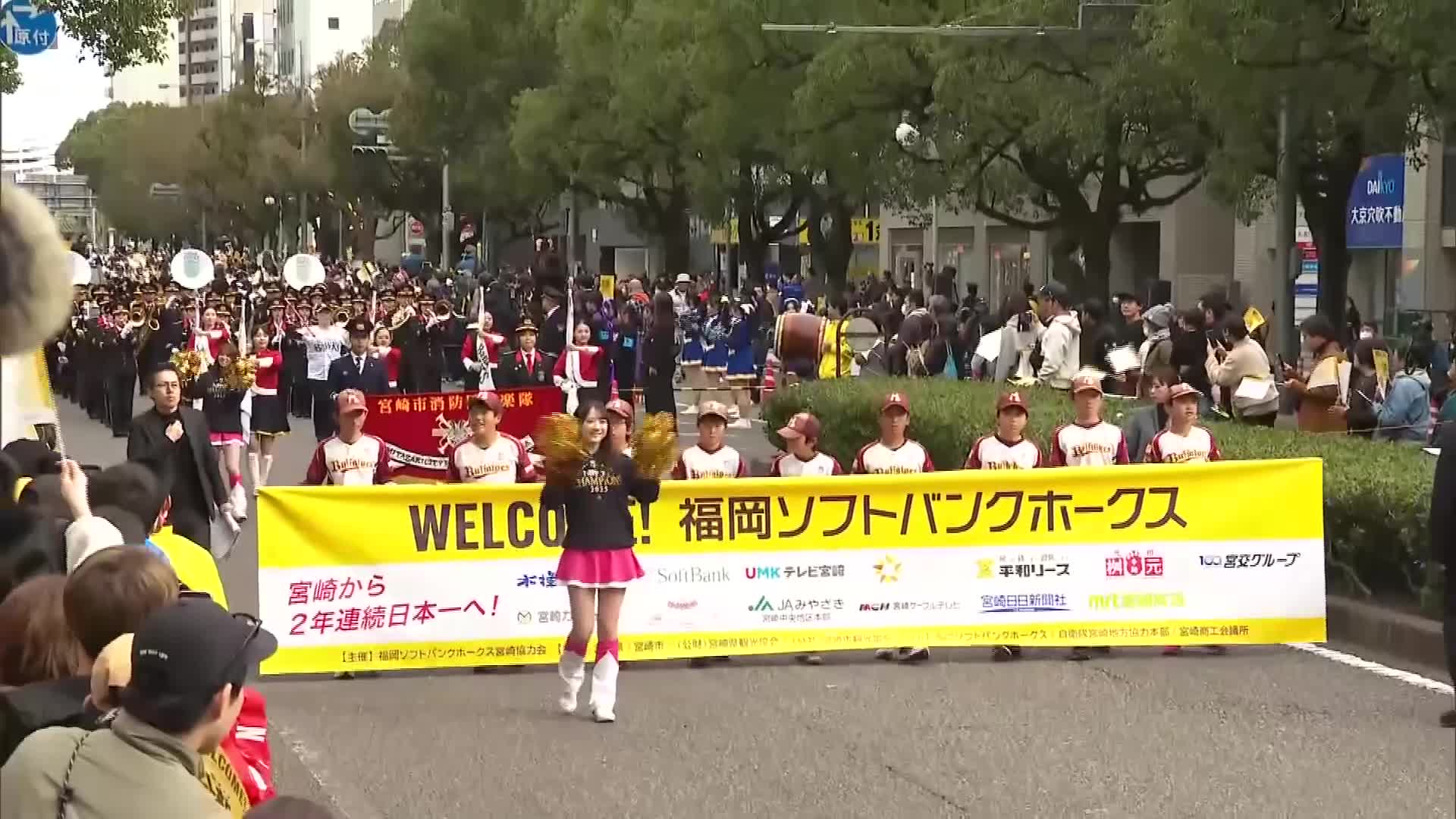 5年ぶりに日本一になったプロ野球・福岡ソフトバンクホークスを祝福する歓迎パレードが宮崎市の高千穂通り…