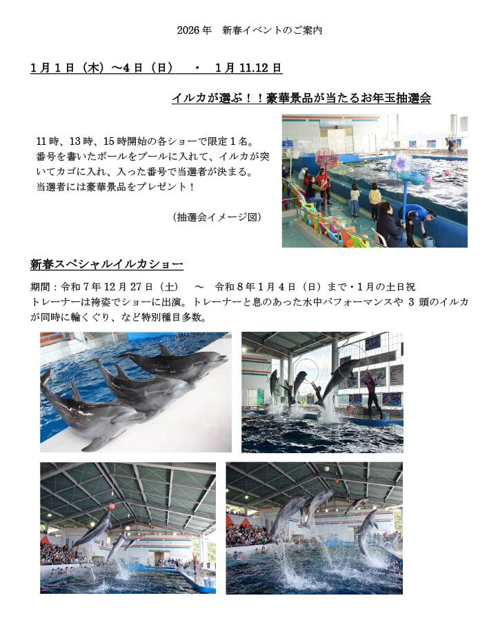 年末年始期間中、志布志湾大黒イルカランドにて「2026新春イベント」開催!
