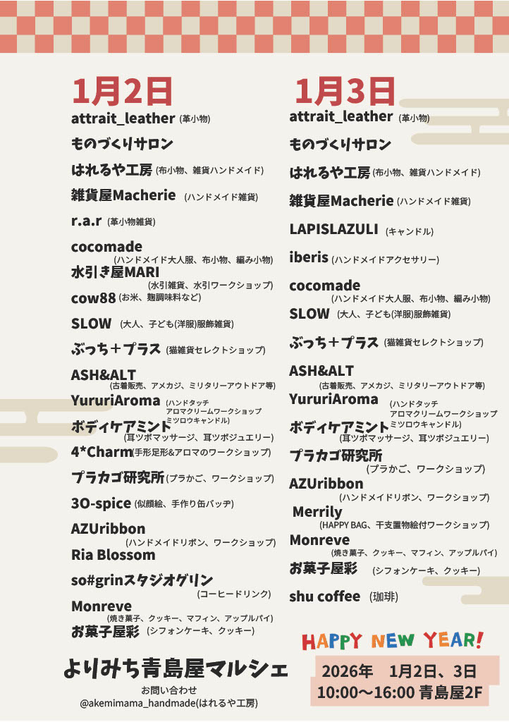 2026年1月2日(金)~1月3日(土)青島屋にて「よりみち青島屋マルシェ」開催!