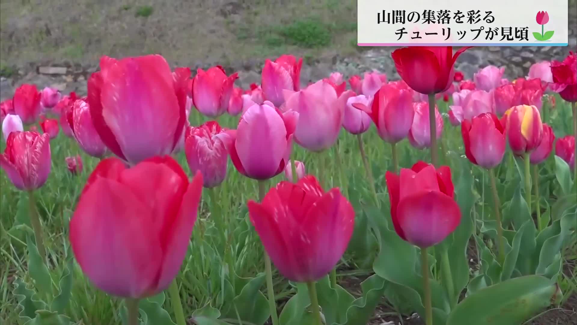 山あいの集落に咲き誇る 色とりどりのチューリップが見ごろに