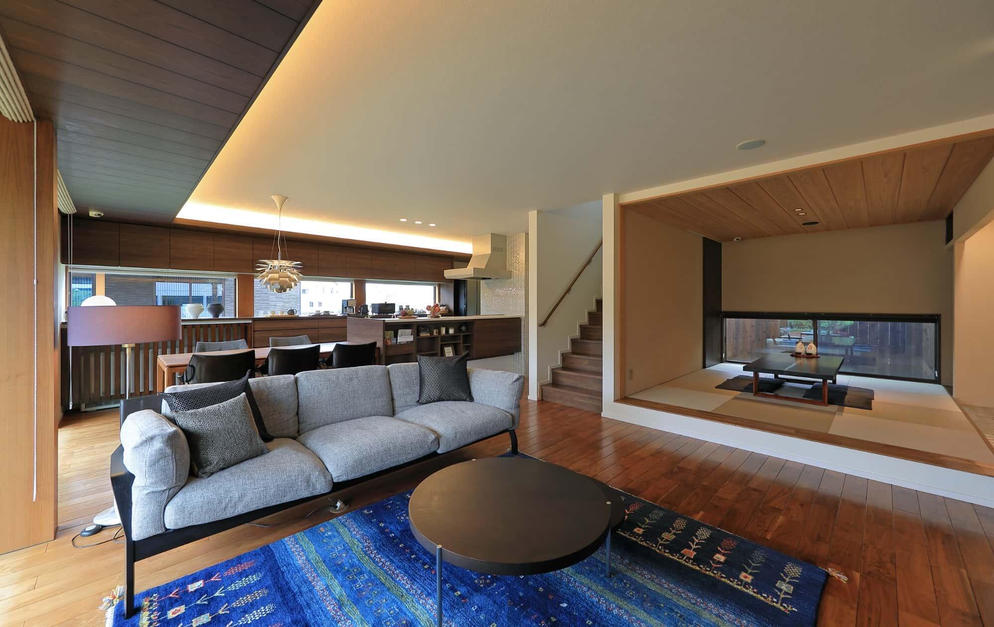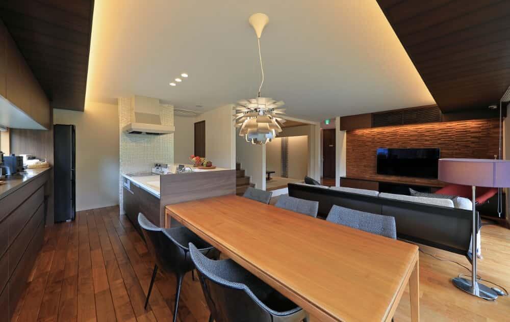 内装はウォルナット材で上質なインテリア空間。