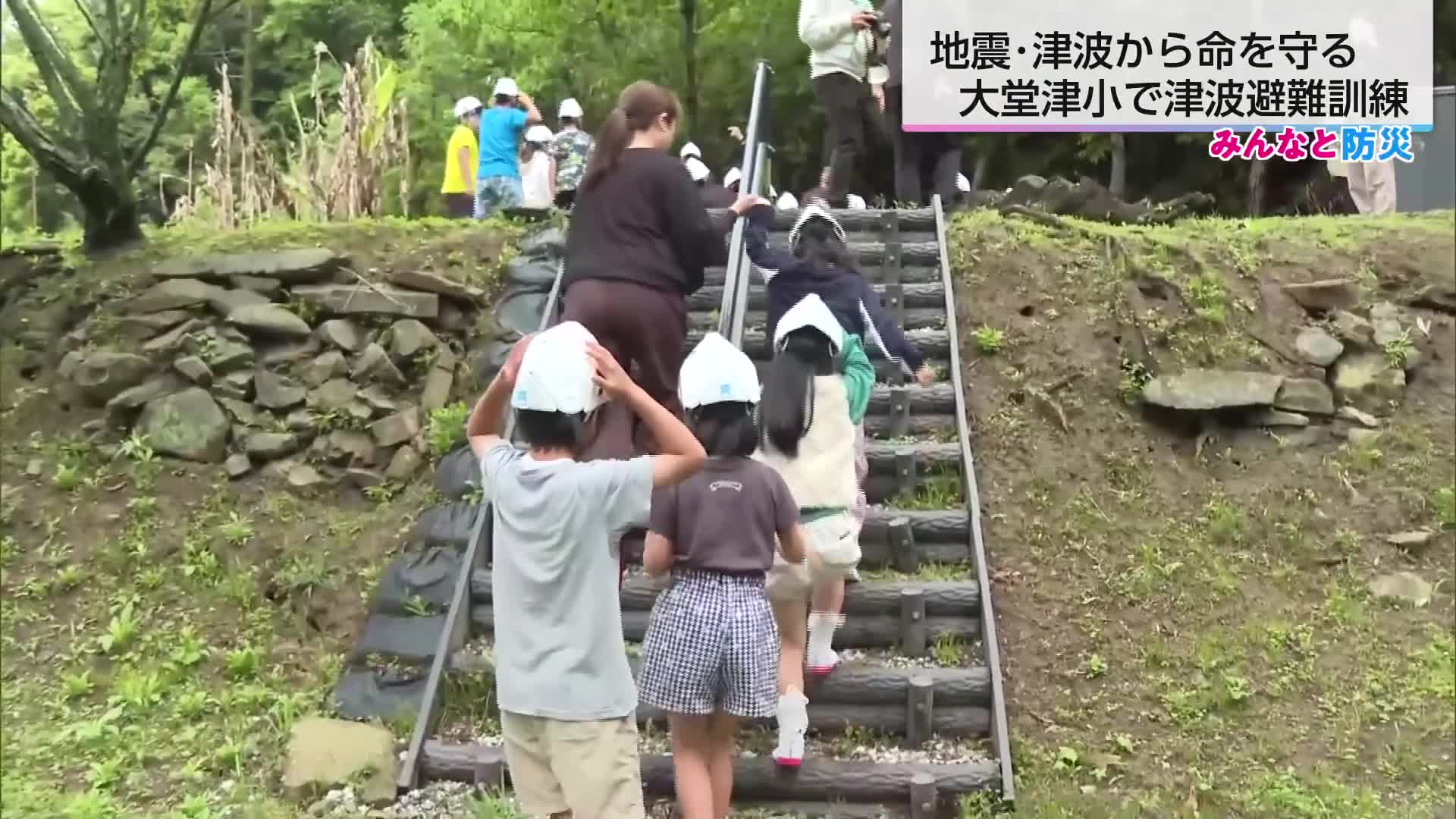 宮崎・ 日南市の大堂津小学校で避難訓練 津波想定し12mの高台へ2分32秒で避難完了