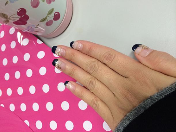 フレンチの先端は濃いネイビー