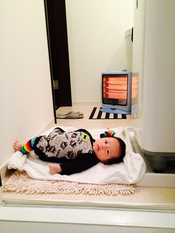 お風呂の扉を開ければ、つぶらな瞳でこちらを見つめる長男坊!