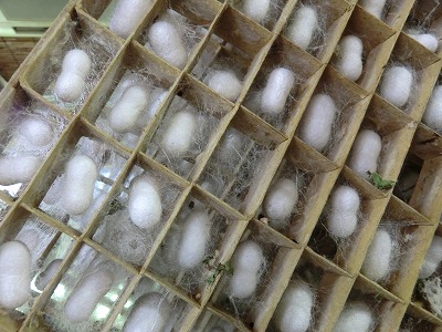 桑の葉を食べて生長した蚕は、やがて「まぶし」と呼ばれる棚に入り糸を吐いて繭を作る。