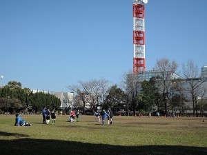 UMK裏の公園では、サッカー少年や野球少年が練習していました。