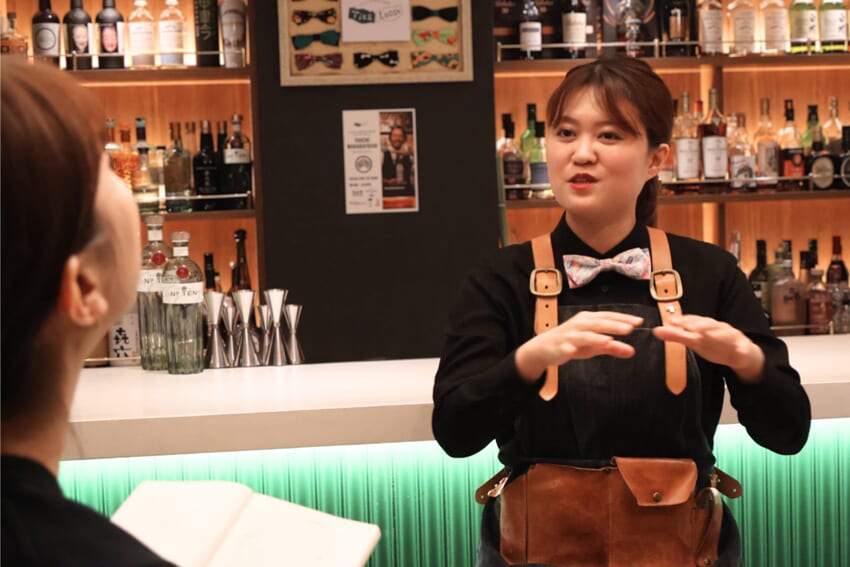 最初は不安も大きかったが、カウンター越しにお客様と向き合い、お酒を通じて喜ばれる瞬間に心が動き、次第に「もっと極めたい」という思いに変わっていった。