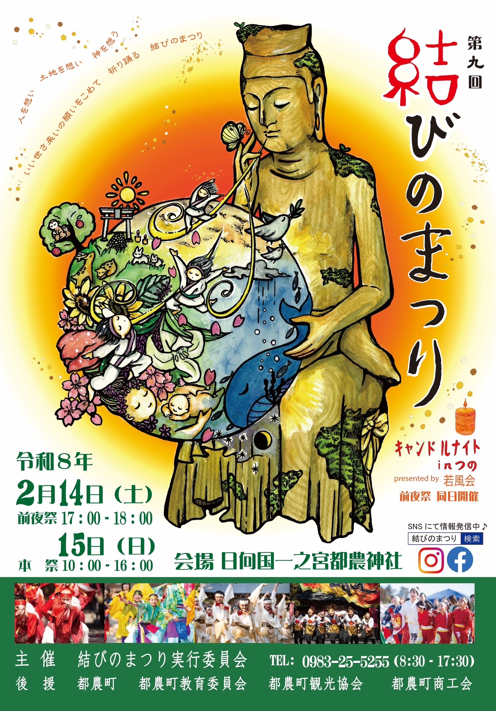2月14日(土)~2月15日(日)に日向国一之宮都農神社にて〜人を想い 土地を想い 神を想う~「結びのまつり」が開催されます!尾鈴の山々に囲まれた自然の恵み豊な都農町の懐で縁結びの神様に守られ、全国各地の踊り子が集い舞い踊りますよ♪