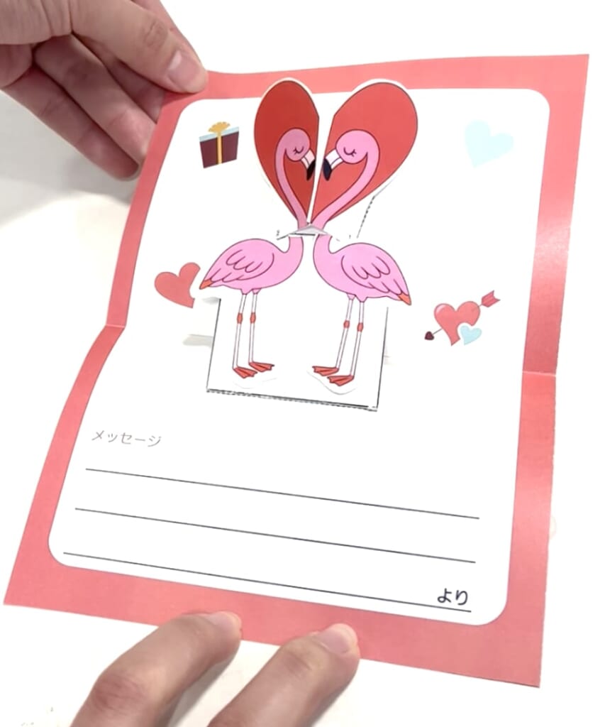 開くとフラミンゴがハートの形に…♡こちらもぜひご参加ください。