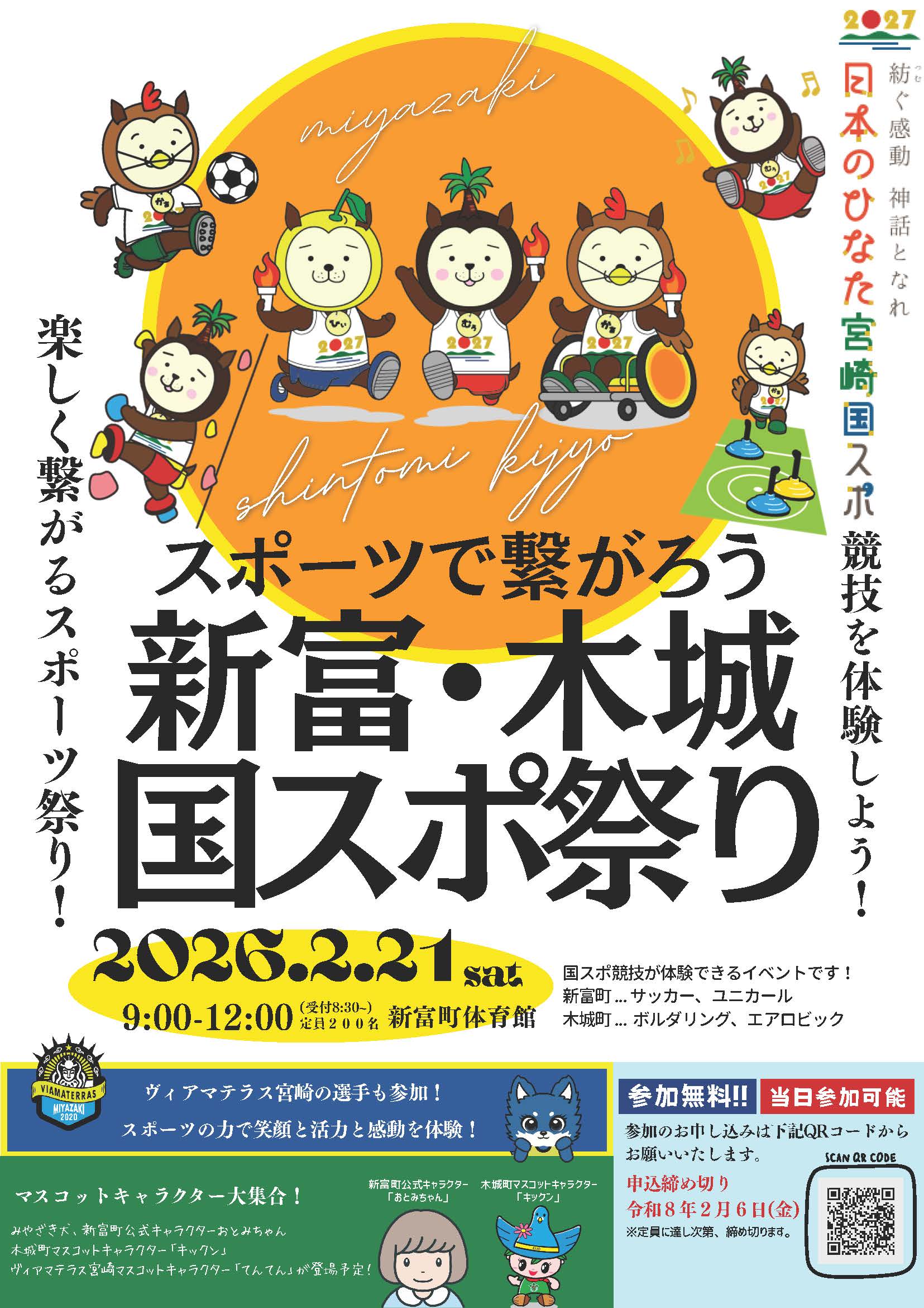 ヴィアマテラス宮崎の選手やみやざき犬、新富町・木城町のマスコットキャラクター達も登場予定ですよ!ぜひ足を運んでみて下さいね♪