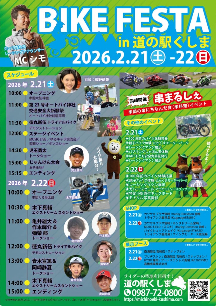 2月21日(土)~2月22日(日)道の駅くしまにて「バイクフェスタ&串マルシェ」が同時開催されます。