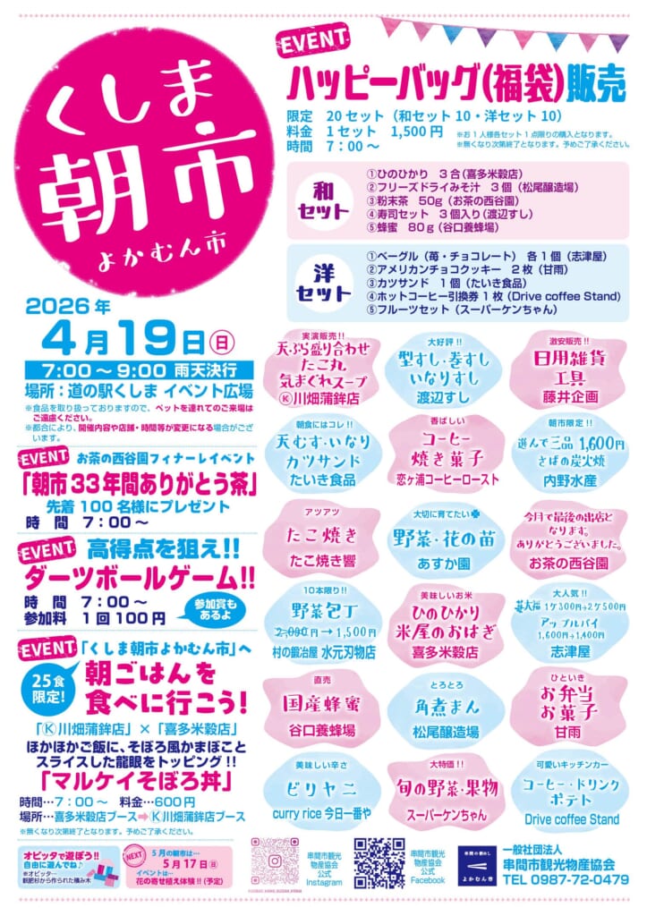 4月19日(日)道の駅くしま イベント広場にて「くしま朝市 よかむん市」が開催されます✨