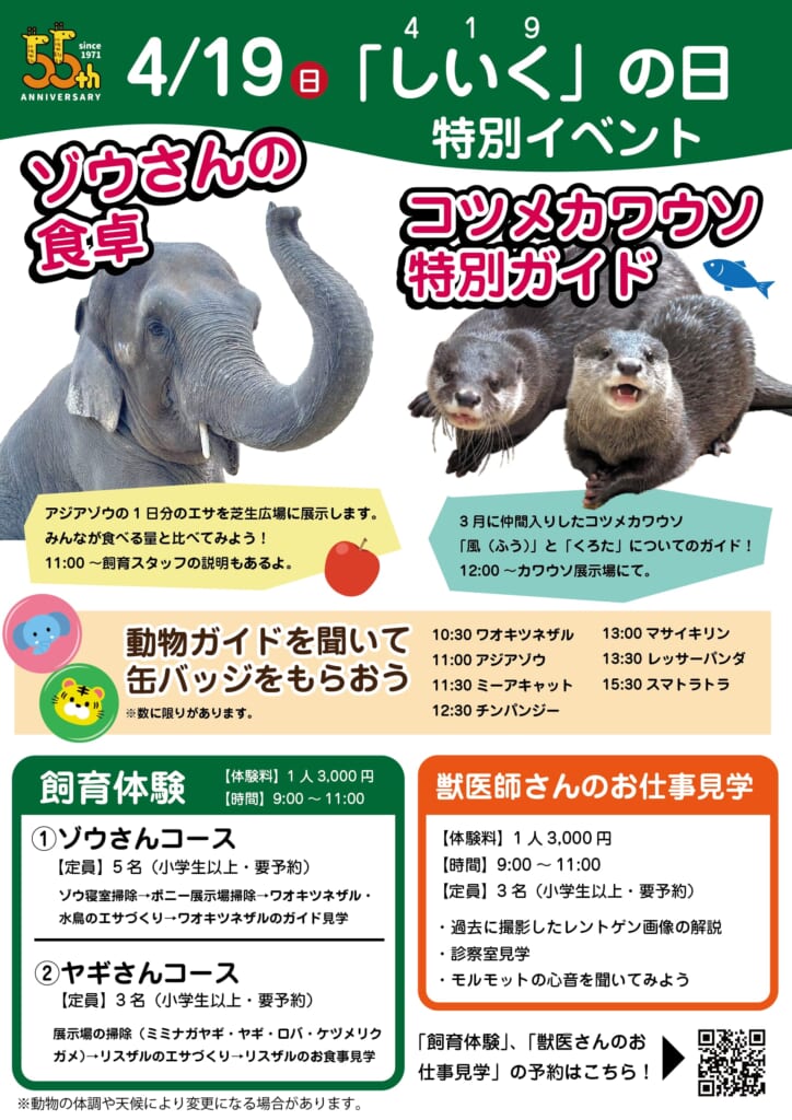 4月19日(日)宮崎市フェニックス自然動物園にて「419(しいく)」の日特別イベント開催!