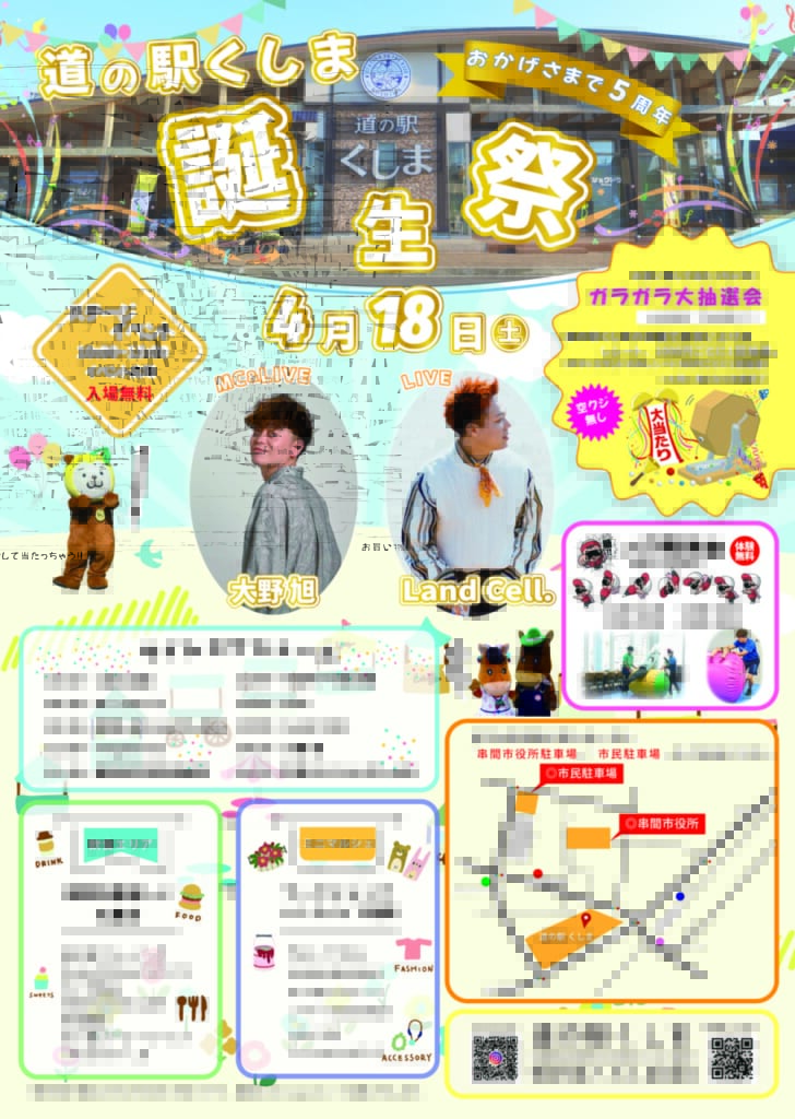 4月18日(土)「道の駅くしま誕生祭」開催!今年で5周年!