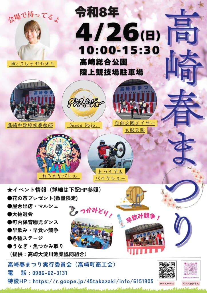 4月26日(日)高崎総合公園陸上競技場駐車場にて「高崎春まつり」が開催されます!お子様に大人気の「鰻・魚のつかみ取り」をはじめ、盛り上がること間違いなしの各種ステージショーなど、家族みんなで楽しめるイベントが目白押しです🎈会場には、地元の美味しいものが集まる飲食ブースや、素敵な雑貨に出会えるマルシェも登場しますよ♩