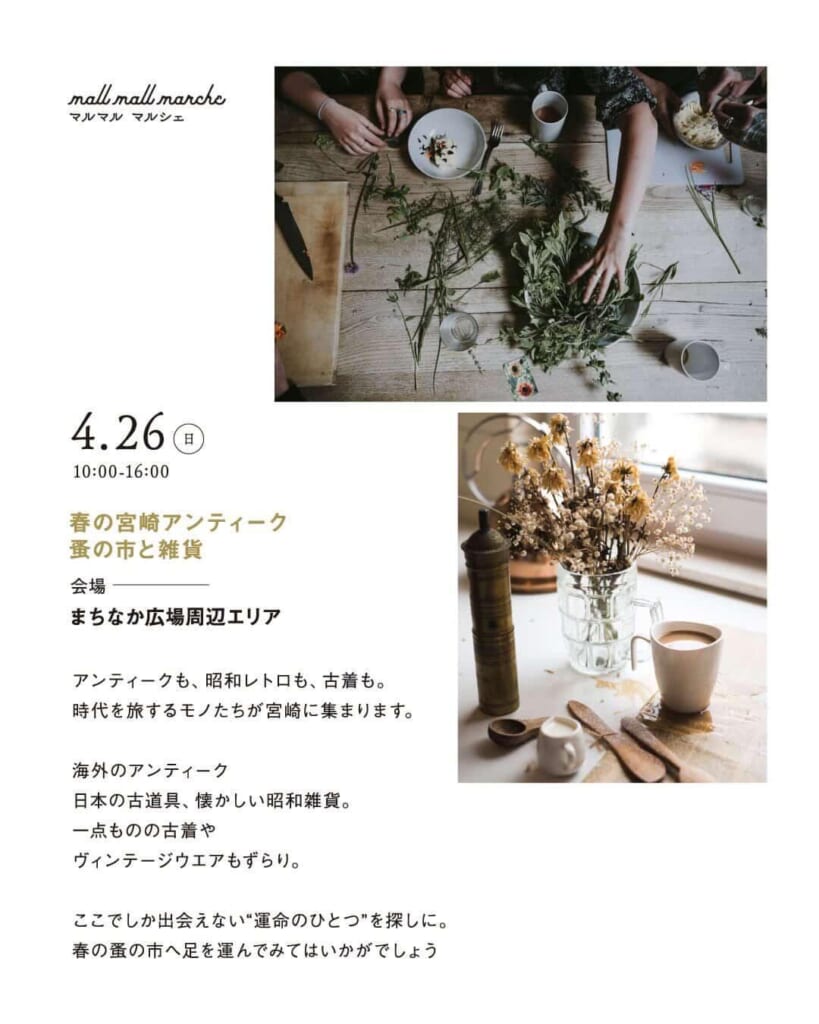 4月26日(日)「mall mall marche ❝春の宮崎アンティーク蚤の市と雑貨❞」開催!