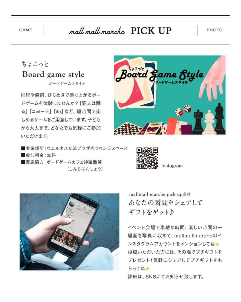 また、ウエルネス交流プラザ内ラウンジスペースでは「ちょこっとBoard game style(ボードゲームスタイル)」も開催されます✨子どもから大人まで、どなたでも気軽に参加できますよ♠