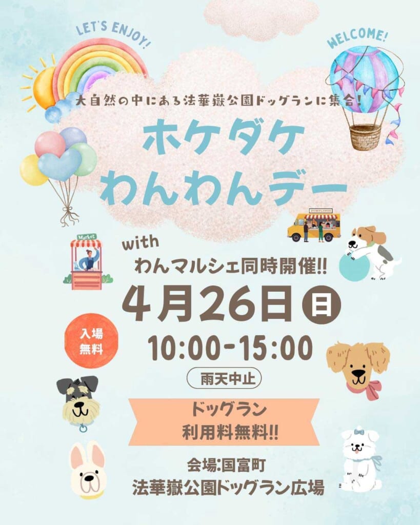 4月26日(日)法華嶽公園ドッグラン広場にて「ホケダケわんわんデー with わんマルシェ」開催!