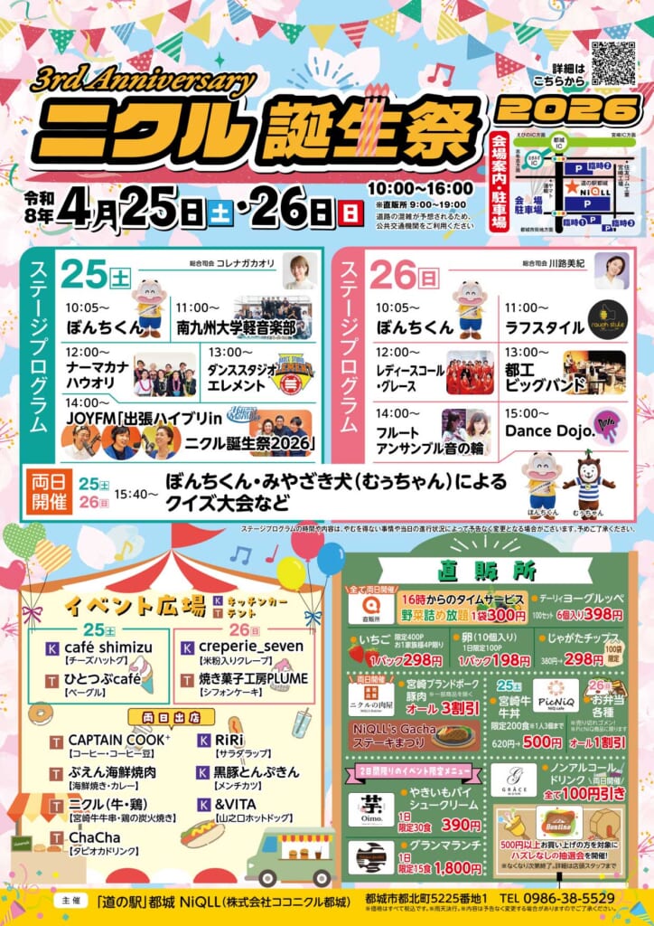 4月25日(土)~26日(日)「道の駅」都城NiQLLにて3周年をお祝いする「ニクル誕生祭」が開催されます!