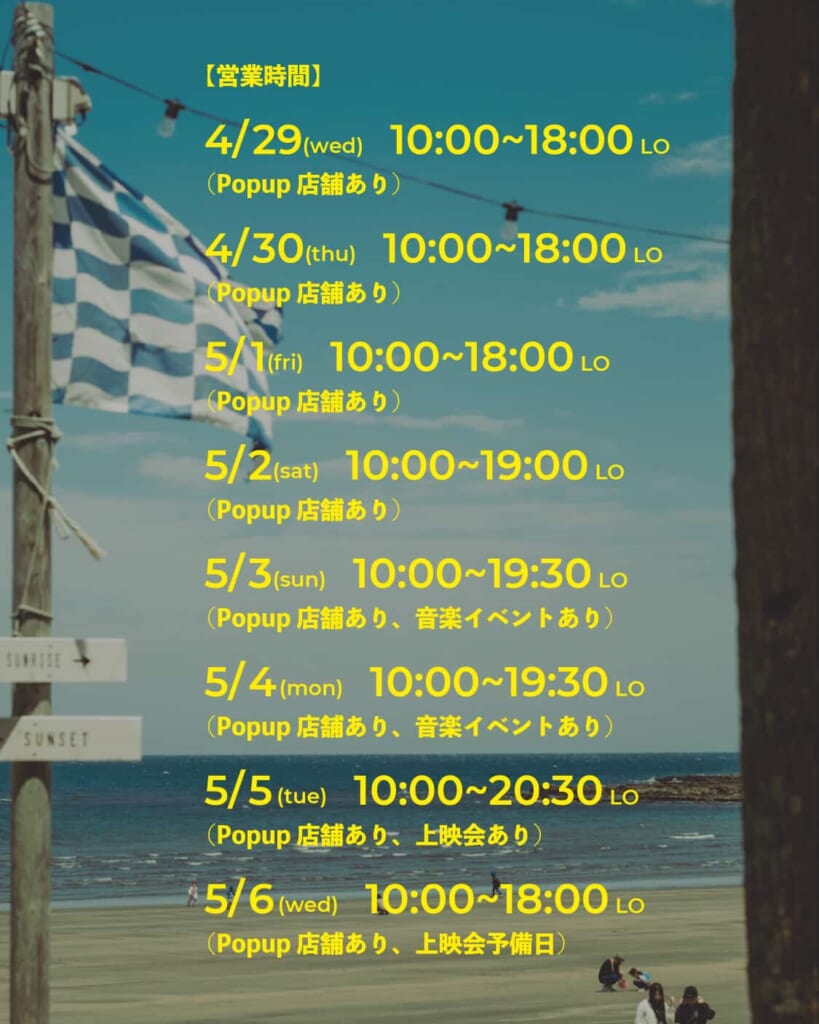 5/5(火) 10:00~20:30 LO(Popup店舗あり、上映会あり🎥)