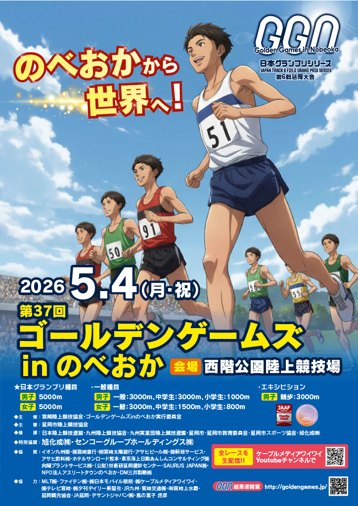 【2026 GWイベント】5月4日(月・祝)西階公園陸上競技場にて「第37回ゴールデンゲームズinのべおか 」開催!(延岡市)