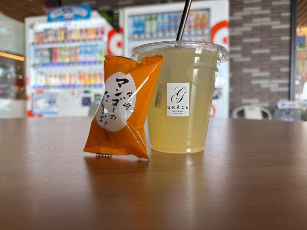 今回は焼酎を一種類、お持ち帰りで購入し、現地ではノンアルコールの日向夏ドリンクを注文しました。次に来たときはアルコールもゆっくりと現地で試してみたいと思います。