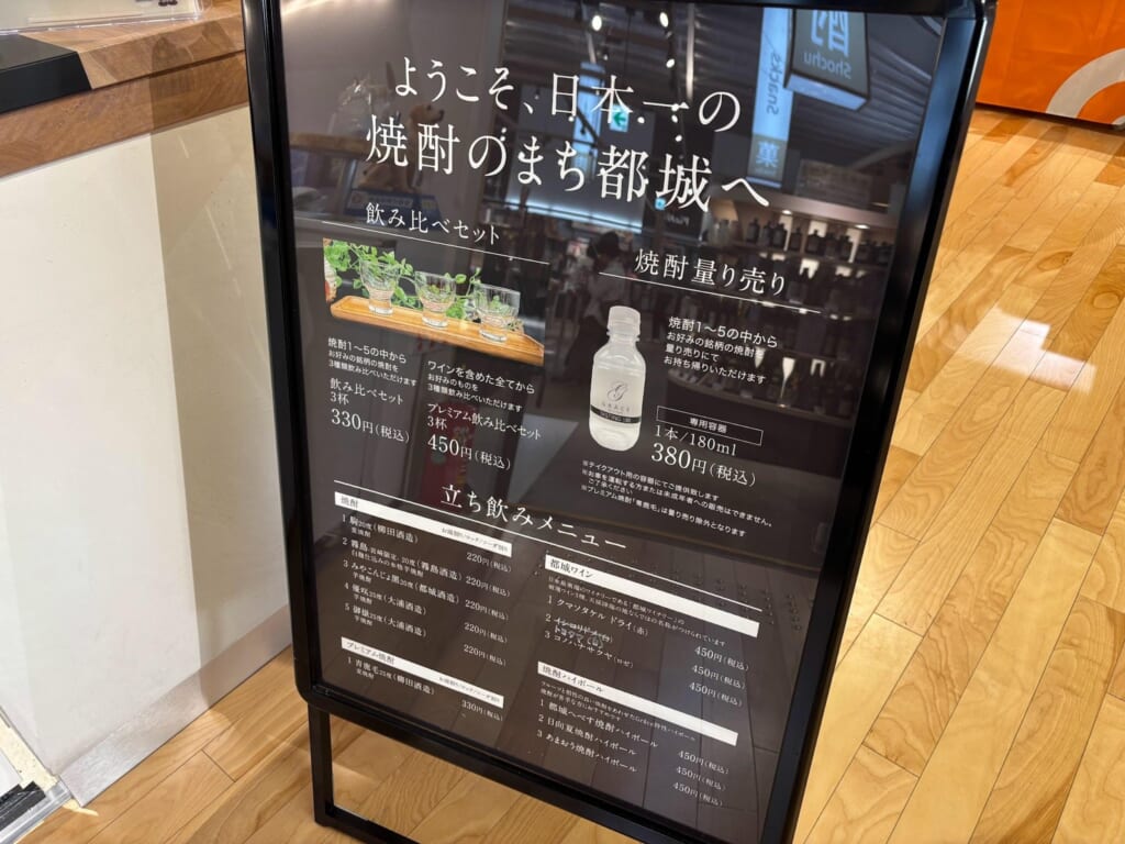 ドリンクを提供しているGRACEでは都城のお酒を飲み比べすることができ、お酒好きの人は前を通るたび足を止めてしまうエリアです。種類が圧倒的に多いというわけではありませんが、ワインやハイボールなども揃っていて、気軽に楽しめるラインナップ。観光ついでに一杯、という使い方がしやすそうな印象でした。