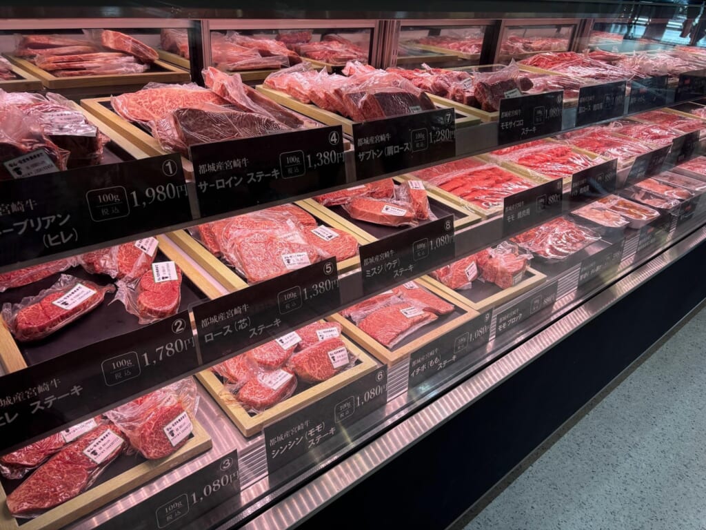 シャトーブリアンのような高級な部位から、普段使いできる豚のこま切れやバラスライス、さらにセンマイやミノといったホルモン系まで揃っていて、「さすが都城」という感じでした。ちょっと贅沢したいとき用の肉もあれば、日常使いできる価格帯のものもあるので、地元の人たちも普段のお買い物として利用しているんだろうなと感じました。