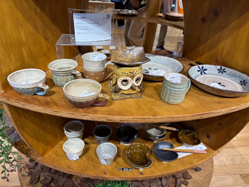 食品だけでなく、陶芸品などの工芸品も並んでいるのが「道の駅」都城NiQLLの面白いところです。マグカップや皿などが多く、どれも手作りらしい温かみのあるデザイン。