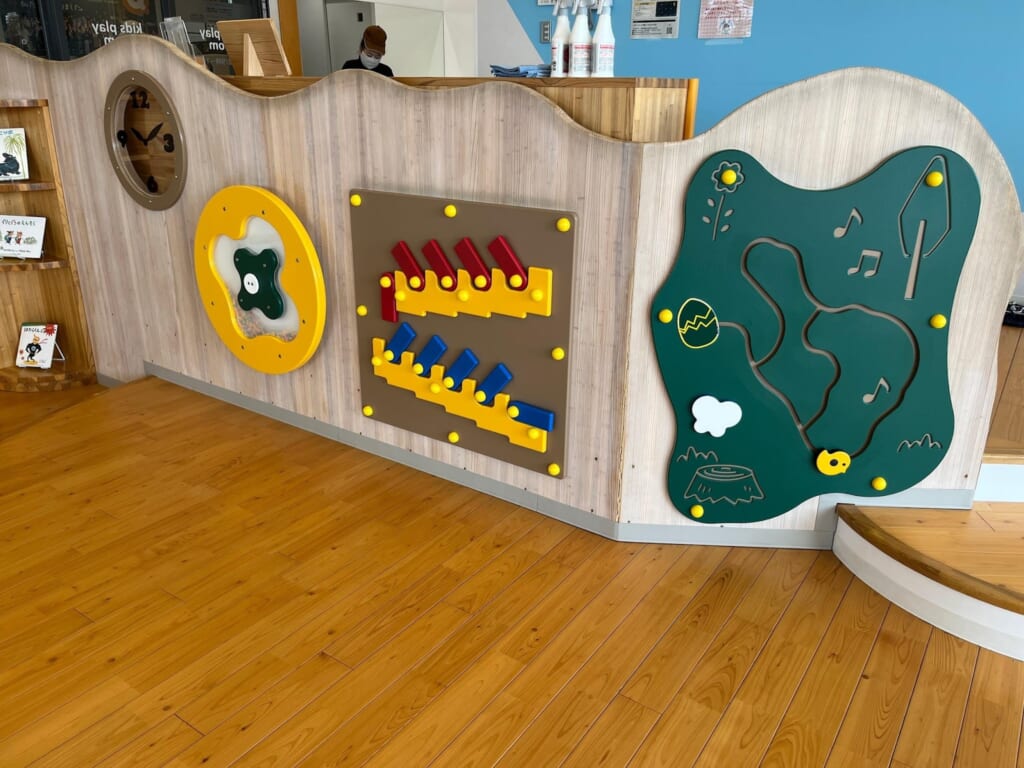 子ども向けの遊び場も用意されていて、これがかなりありがたい存在でした。対象としては、3〜4歳くらいから小学校低学年くらいまでがちょうど良さそうな印象。遊具にはある程度高さもあり、体をしっかり動かして遊べる一方で、小さい子どもは端のスペースで絵本を読んだりと、それぞれの年齢に合わせて過ごせるようになっていました。