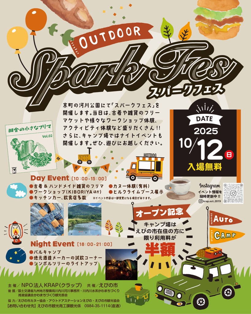 えびの市の京町地区河川公園では10月12日(日)に「スパークフェス」が初開催されます!
