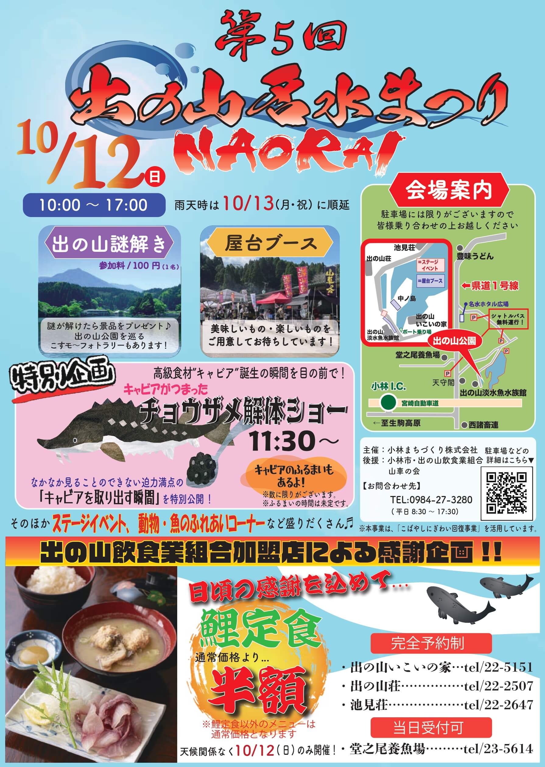 小林市の出の山公園では10月12日(日)に「出の山名水まつりNAORAI」が開催されます!