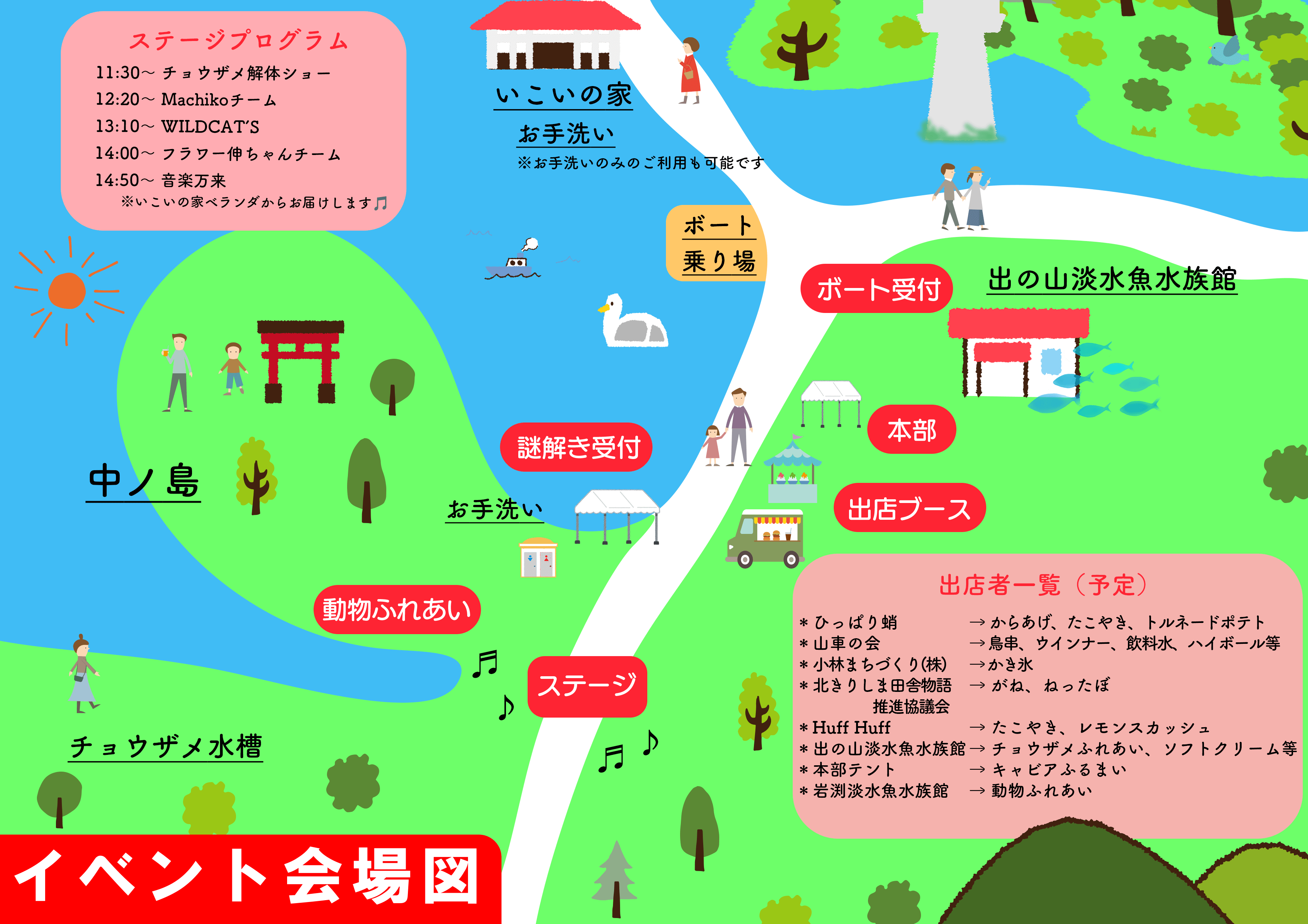 ステージイベントや謎解き、ボート体験、チョウザメ解体ショーや屋台グルメなど盛りだくさん。動物や魚のふれあいコーナーもありますよ♪ぜひ足を運んでみて下さいね。