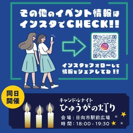 (夕方から、ひゅうがの灯り キャンドルナイト)- 開催場所:日向市駅前あくがれ広場周辺