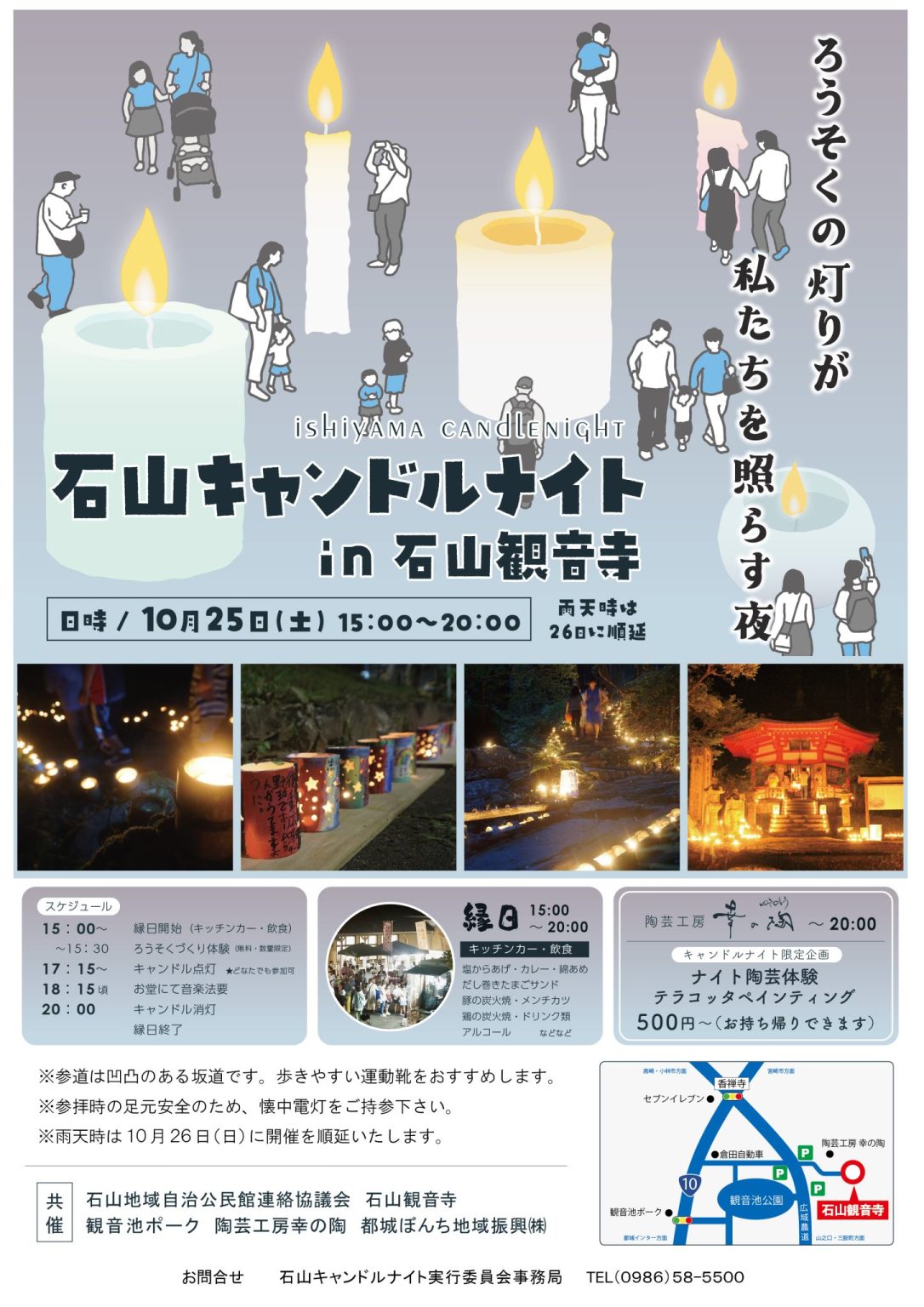 観音池公園近く、都城市高城町石山の「石山観音寺」では10月25日(土)に「石山キャンドルナイトin石山観音寺」が開催されます!