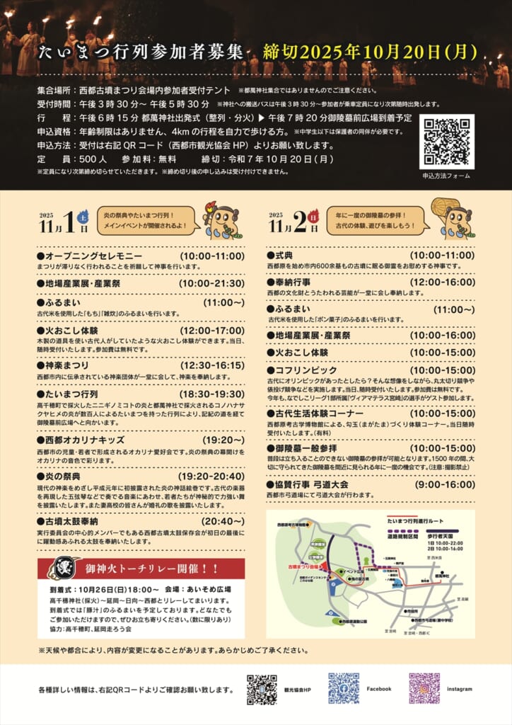 そして、2日目にはコフリンピック、火おこし体験、勾玉づくり体験などのほか、年に一度の御陵墓一般公開もあります。ぜひ足を運んでみて下さいね♪