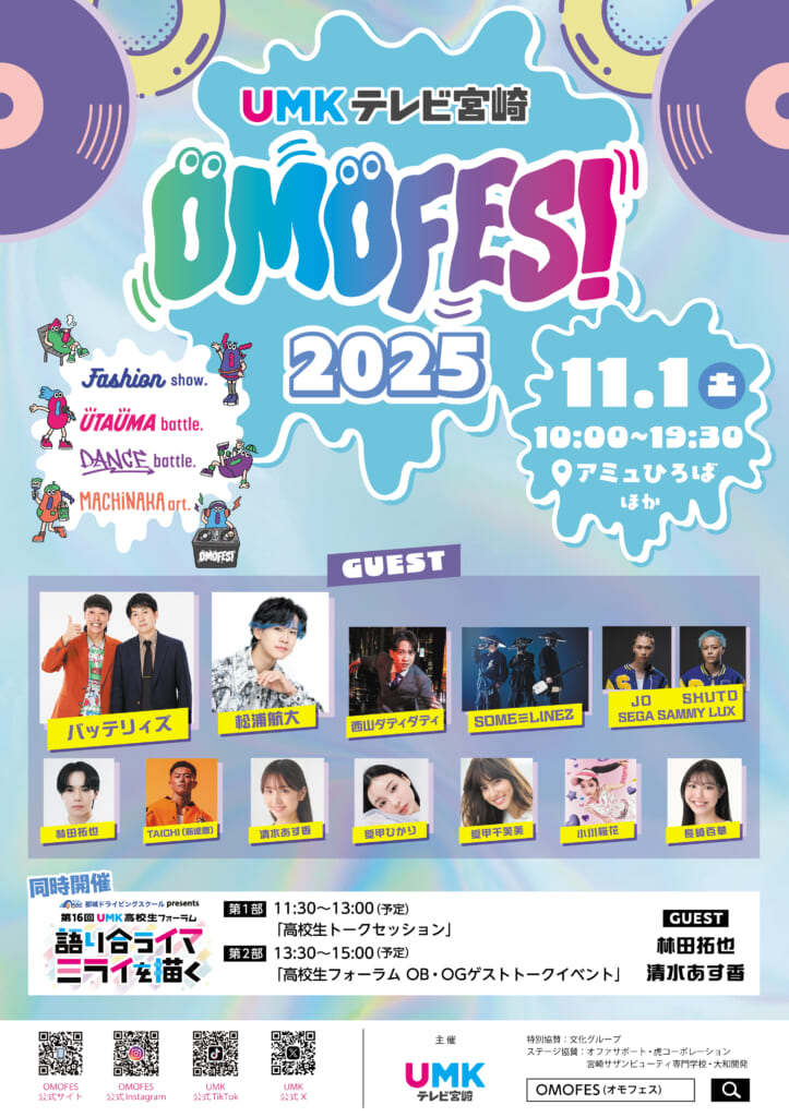 アミュひろばでは11月1日(土)にUMKが主催するティーン向けイベント「OMOFES2025」が開催されます!コロナ禍で学校行事やイベントが制限された学生たちに、楽しい思い出を作ってもらいたい。そんな思いからスタートしたOMOFESは今年3回目を迎えます。