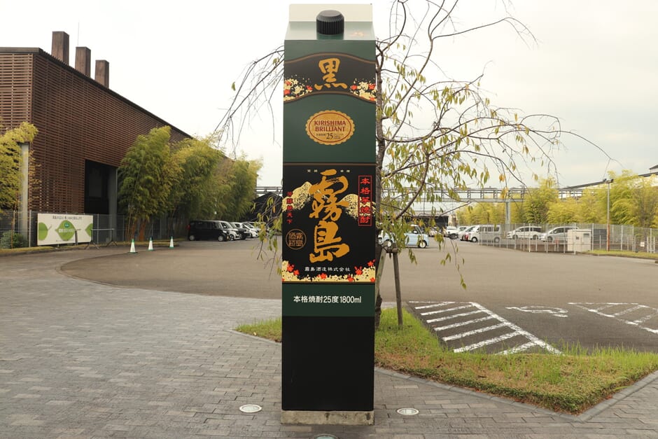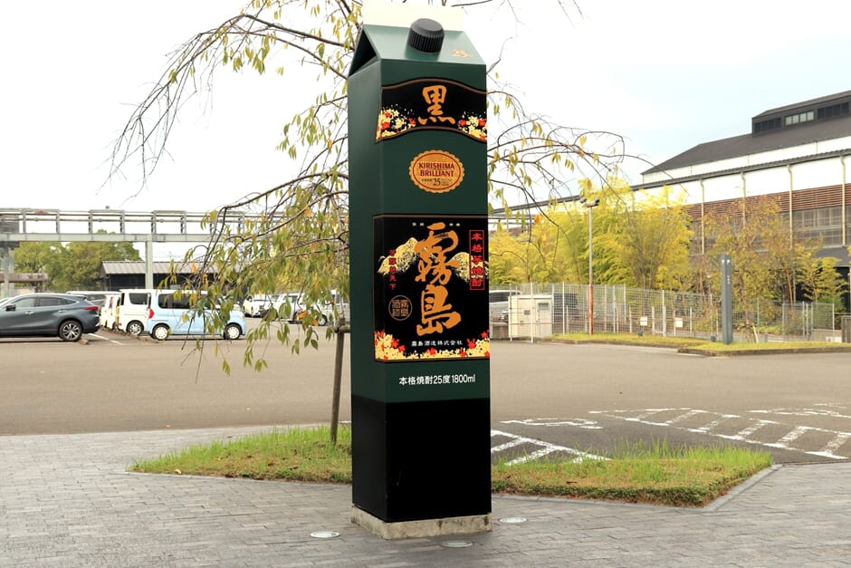 お客様第二駐車場には、大きな芋焼酎「黒霧島」が!広報のご担当者によると、ココは霧島酒造らしさを感じられるフォトジェニックスポットのひとつとのこと。訪れた記念に、ぜひカメラを向けてみてください。