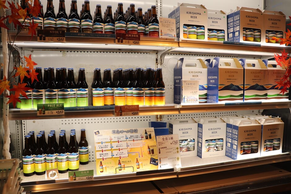 見学後はレストラン、ショップ、ビールの醸造所が一体になった「霧の蔵ブルワリー」へ。ここでは、焼酎製造に欠かせない霧島裂罅水(きりしまれっかすい)で仕込むクラフトビール「KIRISHIMA BEER」を製造、販売しています。