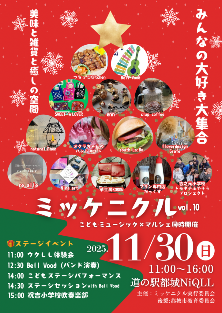 11月30日(日)道の駅 都城 NiQLLでは、みんなの「大好き」が大集合する特別な一日「ミッケニクルvol.10」がこの冬さらにパワーアップして開催されます🎄✨