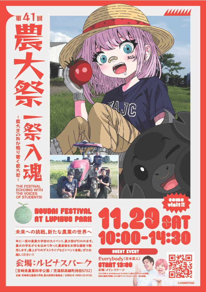 【2025宮崎イベント】11月29日(土)ルピナスパークにて第41回「農大祭」開催!(高鍋町)