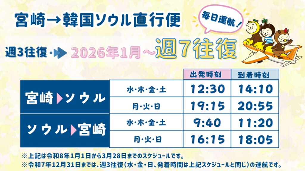 宮崎ブーゲンビリア空港からソウル直行便がさらに便利に!週7往復毎日運航!