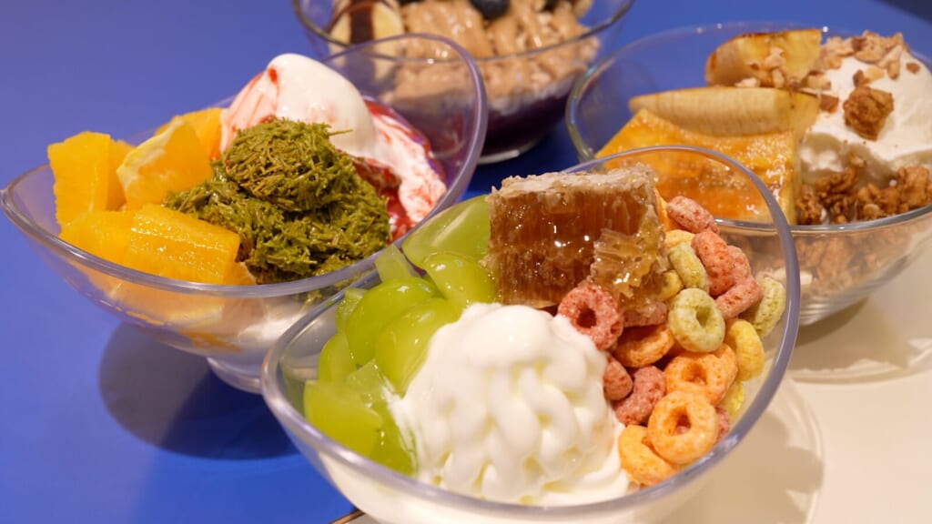 お気に入りのフルーツやソースを自由にトッピングできるのも「ヨアジョン」の魅力!そのアレンジは無限大で、韓国ではアイドルが自分だけのオリジナル推しレシピを公開し、ファンがそれを真似て食べるという楽しみ方も広がっています。