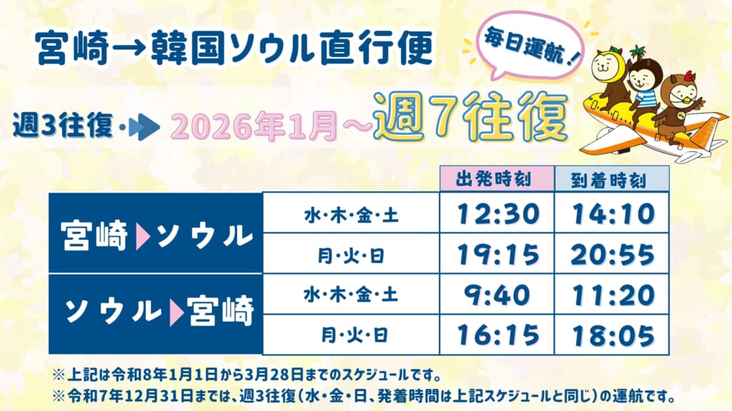 宮崎ブーゲンビリア空港からソウル直行便がさらに便利に!週7往復毎日運航!