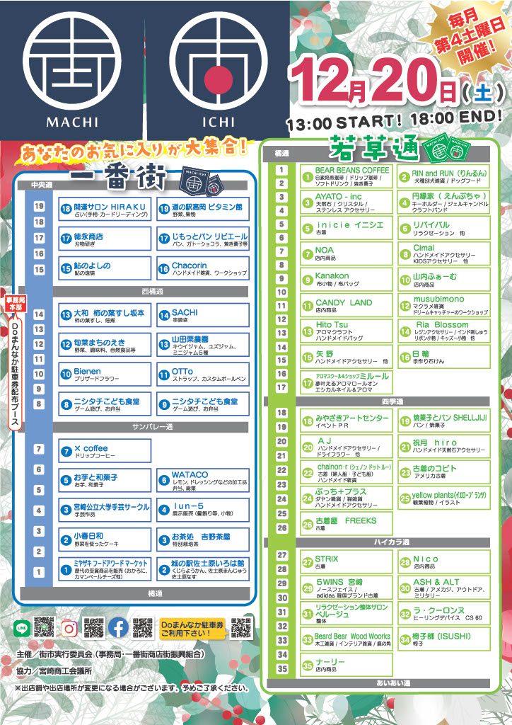 12月20日(土)に一番街周辺では「街市」が開催されます!古着や雑貨、食べ物など多数の出店が予定されていますのできっとお気に入りが見つかりますよ♪ぜひ足を運んでみて下さいね!