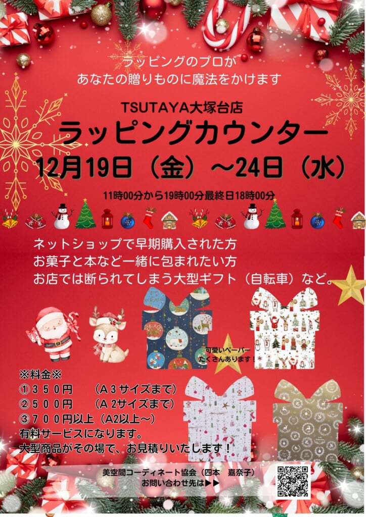 2025年12月19日(金)-12月24日(水)TSUTAYA大塚台店「クリスマスラッピングカウンター」設置!