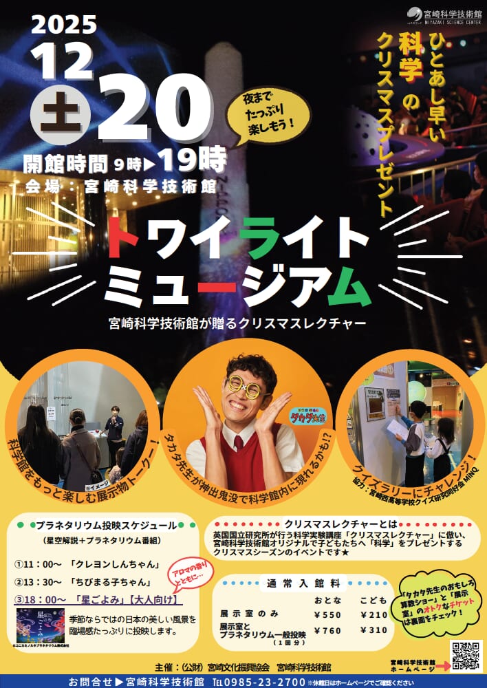 2025年12月20日(土)宮崎科学技術館にて「トワイライトミュージアム」開催!