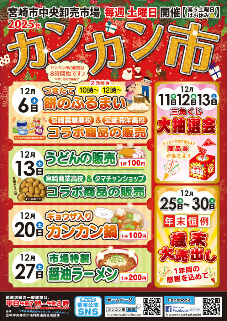 2026年12月27日(土)宮崎市中央卸売市場にて「カンカン市」開催!12月25日(木)-12月30日(火)は歳末大売り出しもあるよ🌟