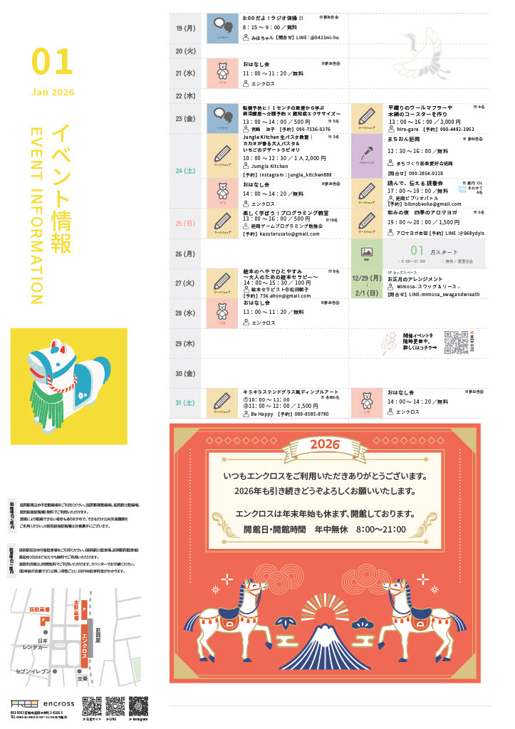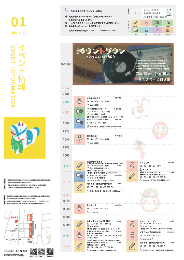 延岡市駅前複合施設エンクロスでは、12月31日(水)に「大みそかカウントダウン」が開催されます🌟今年は昭和100年の節目だったということから、昭和歌謡のレコードを聴きながら年越しを行うそうですよ♩昨年好評だった駄菓子のつかみ取り(無料)も楽しめます!エンクロスは年末年始も休まず営業されるということですよ!ぜひ足を運んでみて下さいね♪