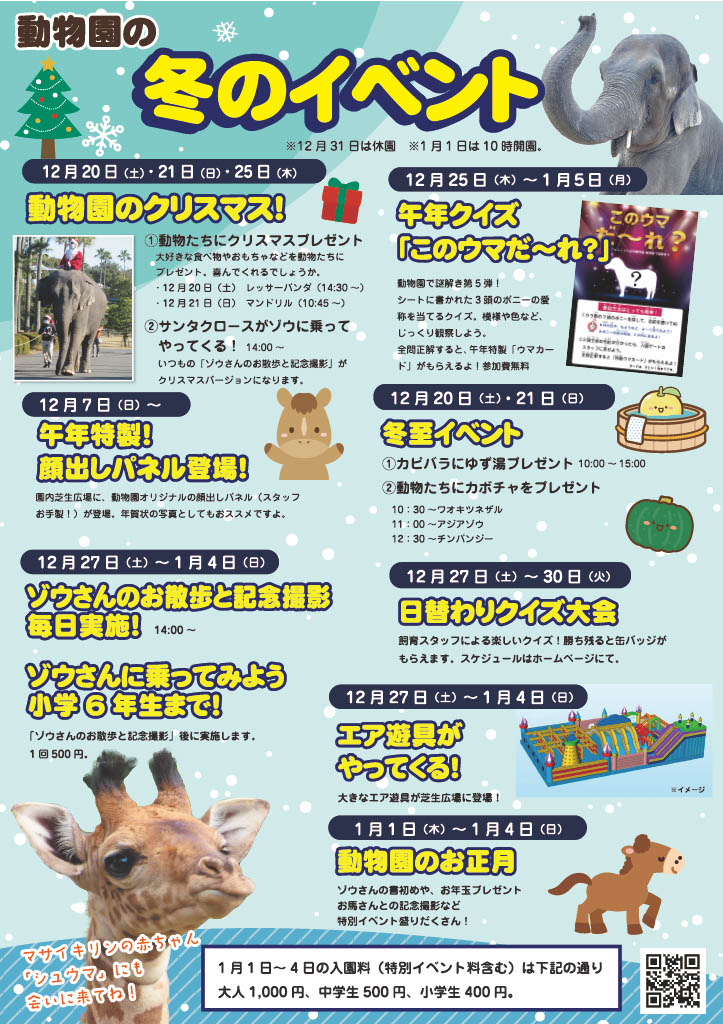 2025年12月27日(土)-2026年1月4日(日)フェニックス自然動物園で「冬休み&お正月特別イベント」開催!